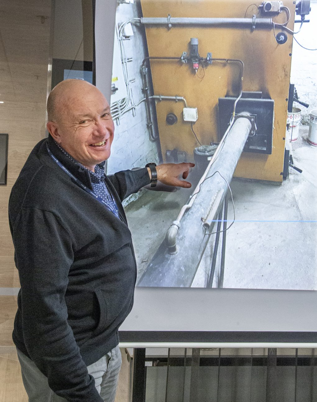 – Lämpökeskuspaloista puhuttaessa esiintyy usein sana takapalo. Takapalo syntyy, kun savupiipun sijaan veto alkaakin käydä syöttöruuvin suuntaan.